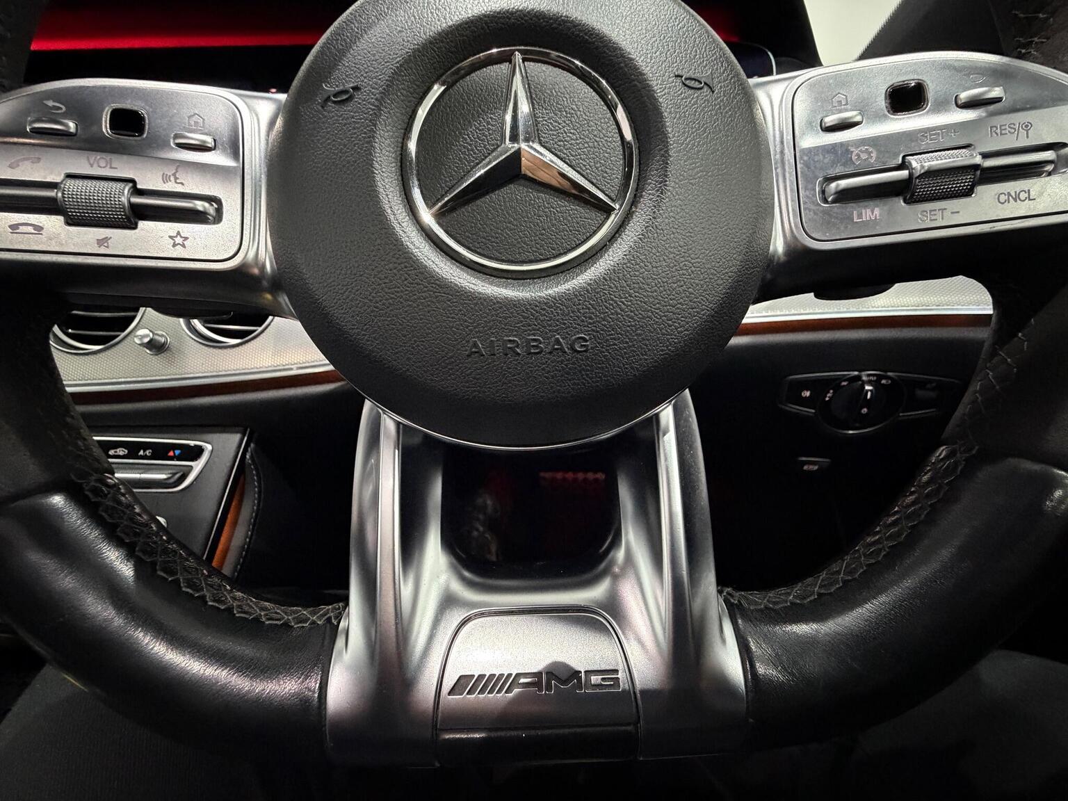 • Steering Wheel - 3-Spoke Multi-Function AMG Performance Trimmed in Black Nappa Leather-DINAMICA Microfibre with Flattened Bottom Section and Grey 12 O'Clock Marking